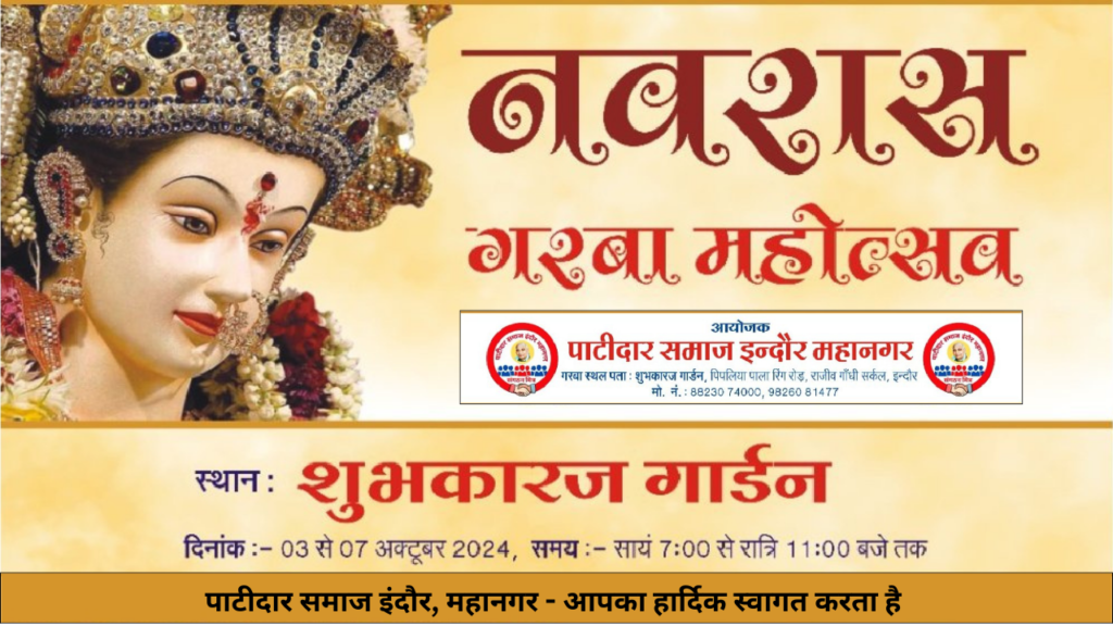 The Patidar Samaj Indore Mahanagar is proud to announce the grand Navras Garba Mahotsav 2024, a multi-day festival that will bring together vibrant traditions, music, and dance in the heart of Indore. This eagerly awaited event will be held at the Shubhkaraj Garden, Piplia Pala, a venue known for hosting some of the city’s most celebrated cultural gatherings.